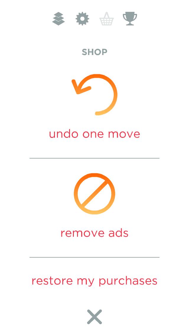 與其他同類作不同,本作並不提供解答,但如果想要好成績,又不想每次重頭開始,遊戲中是另外提供內購讓玩家「悔棋」,讓玩家在一次挑戰中能回到上 一步。不過說真的以本作輕鬆亂點的調性來說,要用到這個功能的次數並不太多。