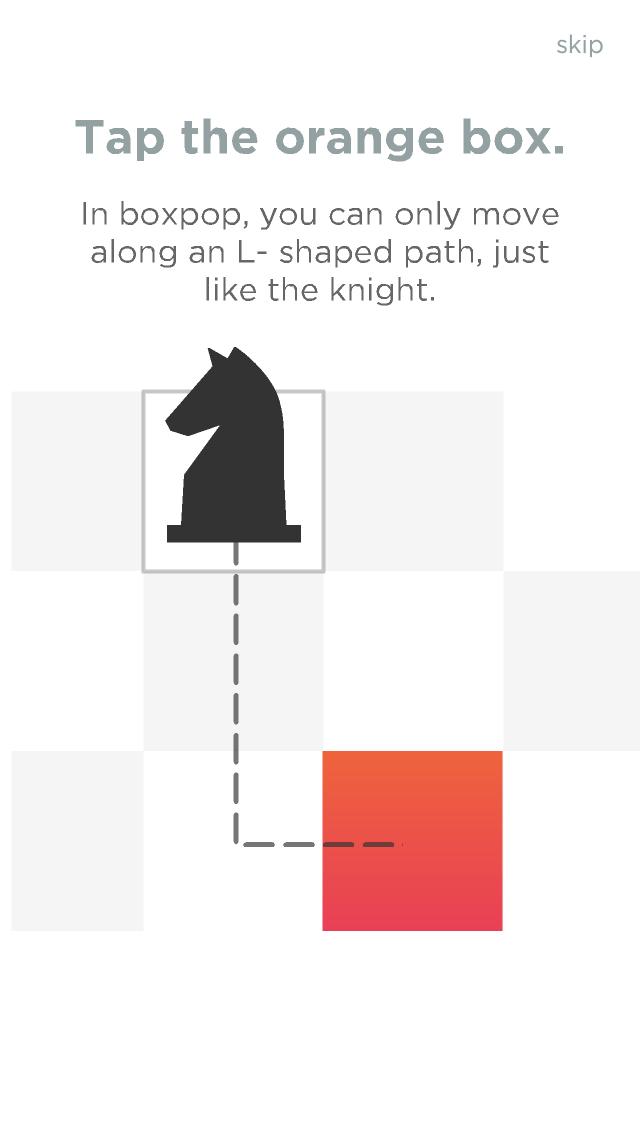 BoxPop》則是以當中舉足輕重的棋種 「騎士 / 馬 / 桂」特有的斜向移動方式為主軸而設計的益智類型遊戲。