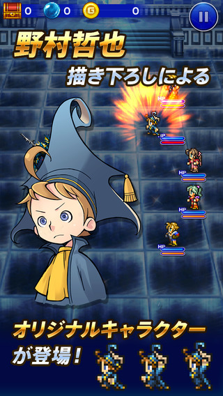當玩家突破各世界的關卡後,就有機會獲得以點陣圖呈現的歷代知名角色如克勞德(FF VII)、提達(FF X)、邦(FF XII)、史克爾(FF VIII)、雷光(FF XIII)等人,能夠將這些角色編入自己的隊伍中。