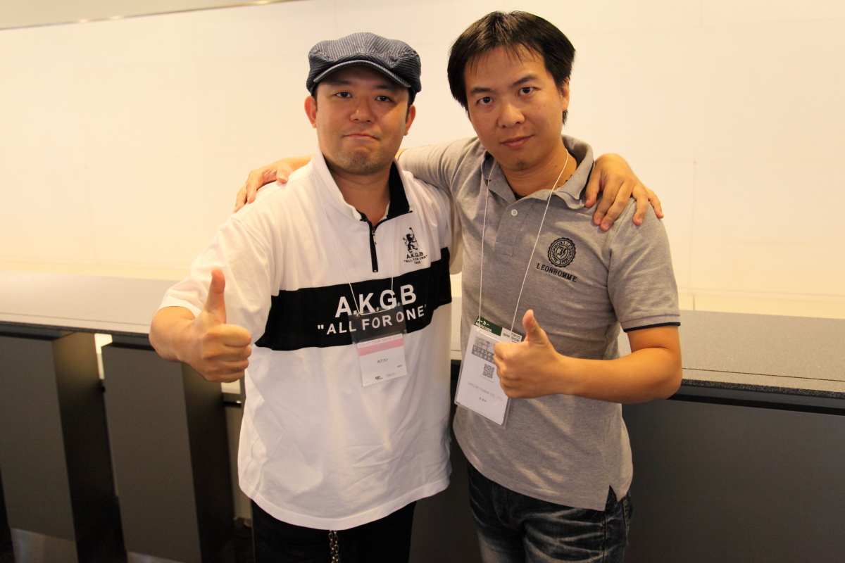 《魔物獵人 Frontier Online》製作人「杉浦一德」 ( 左),繁中版製作人「Kim」(右)