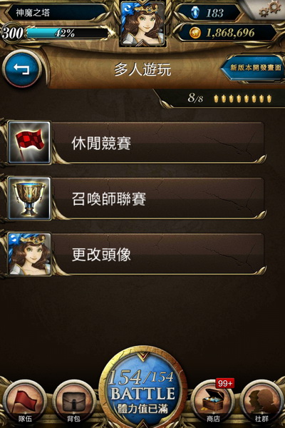 繼 7.1 版本釋出「多人遊玩」系統後,遊戲團隊一直為系統進行壓力測試及設計改良。在新版本中,「多人遊玩」系統將無需消耗遊戲體力,玩家可以藉著使用「戰靈」來打開「召喚師聯賽」及「休閒競賽」關卡對戰,希望讓玩家專心享受多人遊玩同時,也能平衡參與遊戲的主線關卡及活動。