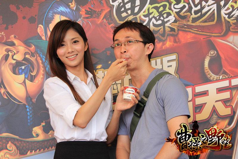 曹操之野望》的遊戲玩家們,官方大手筆準備「萬元現金」並免費提供「Haagen-Dazs 冰淇淋」贈送給現場的每位玩家。本次活動邀請從三國穿梭至今的神秘嘉賓現代小喬「豆花妹」出場,「豆花妹」穿著一身性感 OL 套裝現身,引起圍觀民眾一陣騷動,馬上成為鎂光燈焦點。主持人納豆趁機為現場民眾謀福利,不僅安排豆花妹親自餵玩家吃冰淇淋,更送上價值千元的虛寶卡,官方回饋玩家可說是超有誠意不手軟,讓到場的玩家們滿載而歸!