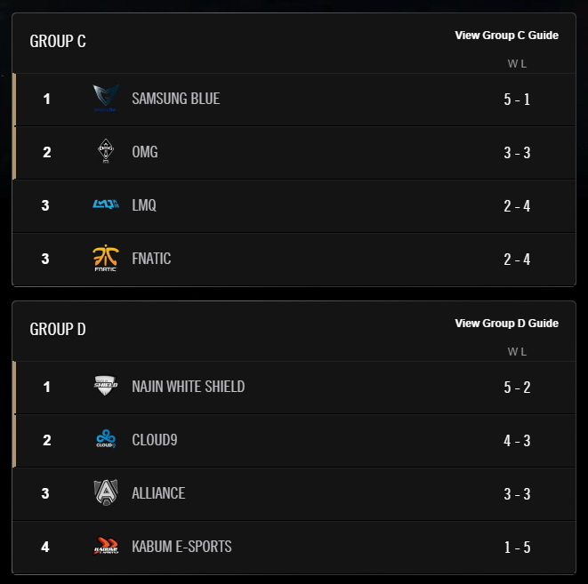 》2014 世界大賽新加坡站 C、D 組賽事於昨日正式落幕,C 組 Samsung Blue(SSB)、OMG 以及 D 組 Najin White Shield(NWS)與 Cloud9(C9)四支隊伍取得 8 強資格。