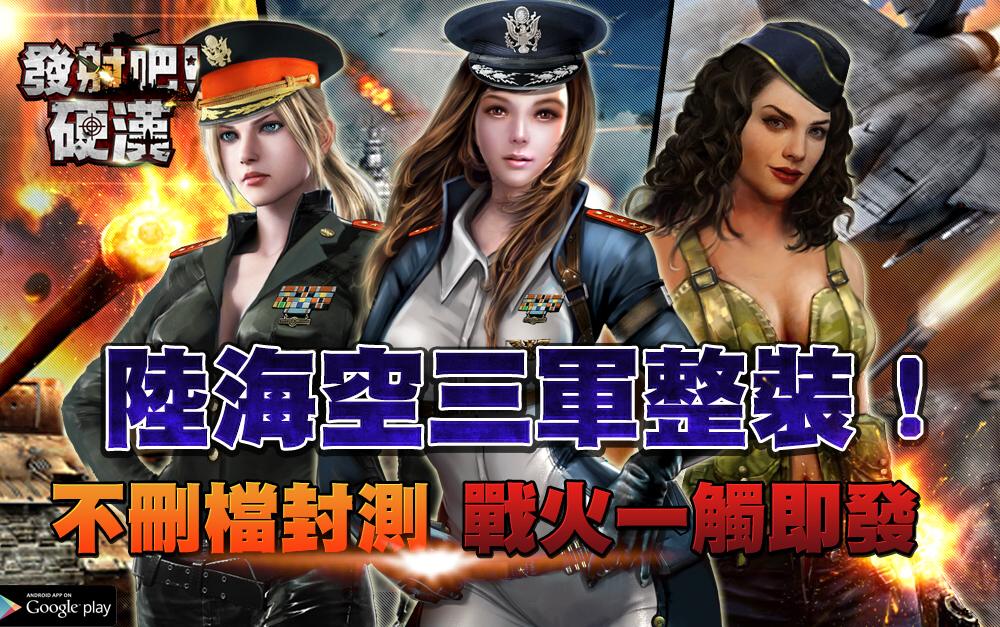 《發射吧!硬漢》主要形象視覺,邀請硬漢玩家們體驗三軍齊發的戰鬥快感!