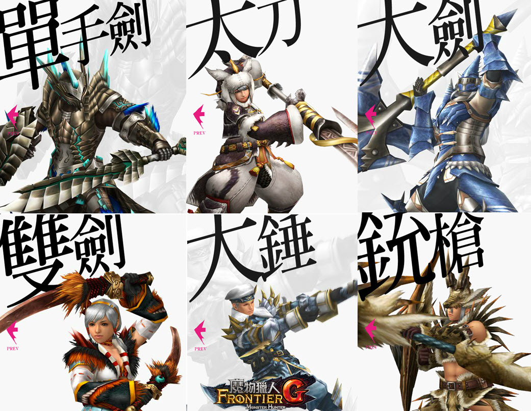 魔物獵人 FRONTIER G》不僅止增加了新系列武器,在 11 種武器上也增加獵人的攻擊動作,「單手劍」新動作「無限連斬」由突刺銜接的攻擊,可連續進行斬擊魔物弱點;「雙劍」則是增加擁有華麗迴避與猛攻的「真鬼人解放」,將鬼人之力發會至淋漓盡致;「太刀」的「氣刃放出斬」接續在氣刃斬的結尾新增類似集氣動作,由靜轉動揮出瞬間一刃。