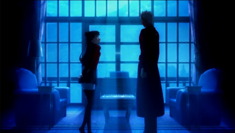 首先在劇情方面,本次的新動畫版可說是非常的注重戲份分配。雖然 UBW 線的劇情在前半段與舊作幾乎沒有差別,但為了因應主角變為凜和 Archer;故不僅增加了在舊作中幾乎沒有戲份的凜同學一夥的刻畫,在凜和 Archer 的互動上也比舊作描述得深刻上許多。就算是十分考究的原作黨觀眾,相信也不會對這個腳本有太多的不滿。另外,在途中便可以發現劇組忽略(或刻意隱瞞)了某些劇情,是為了埋梗或是判斷沒有必要,這點就要看後面的演出才能得知了。