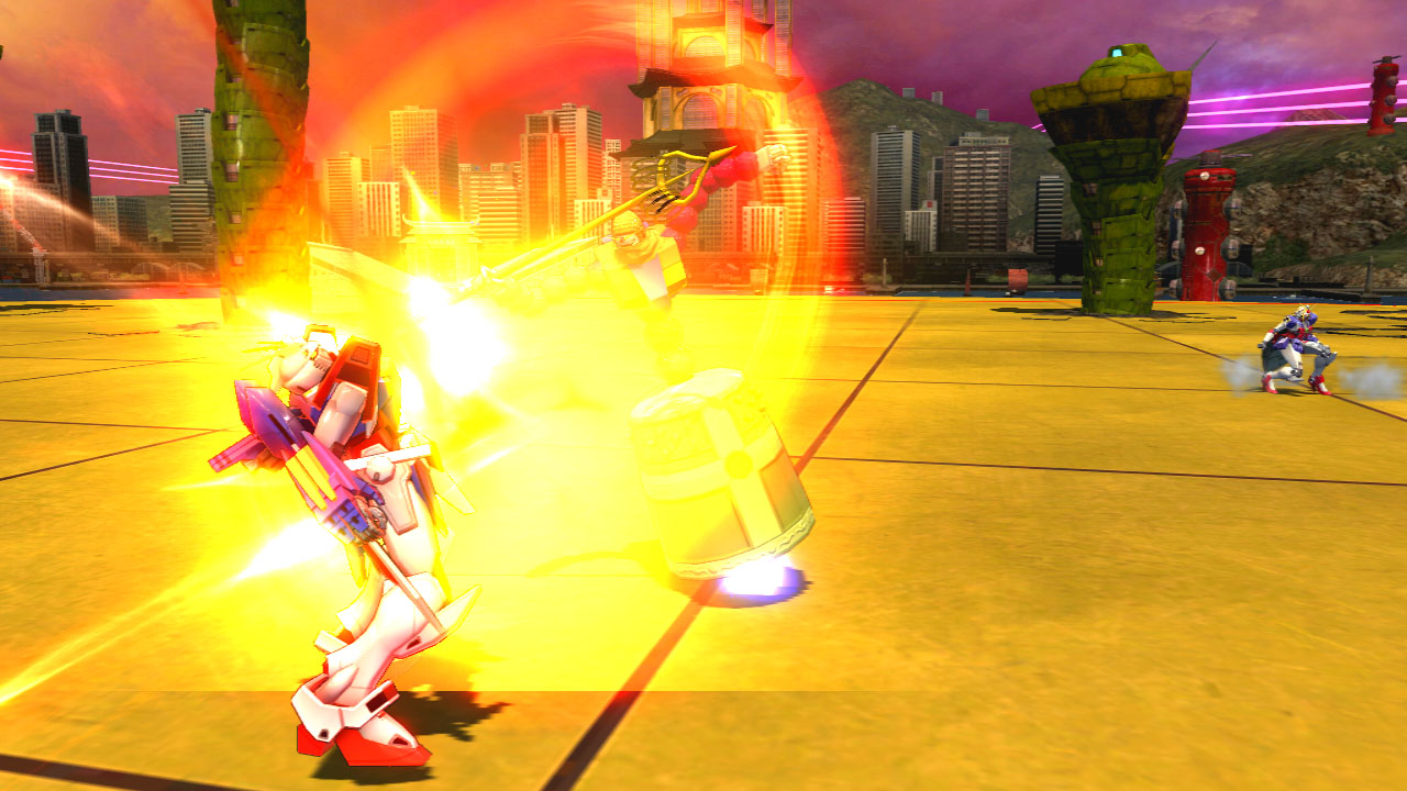 呼叫出曼陀羅鋼彈後,曼陀羅鋼彈將會接近敵人進行格鬥攻擊。