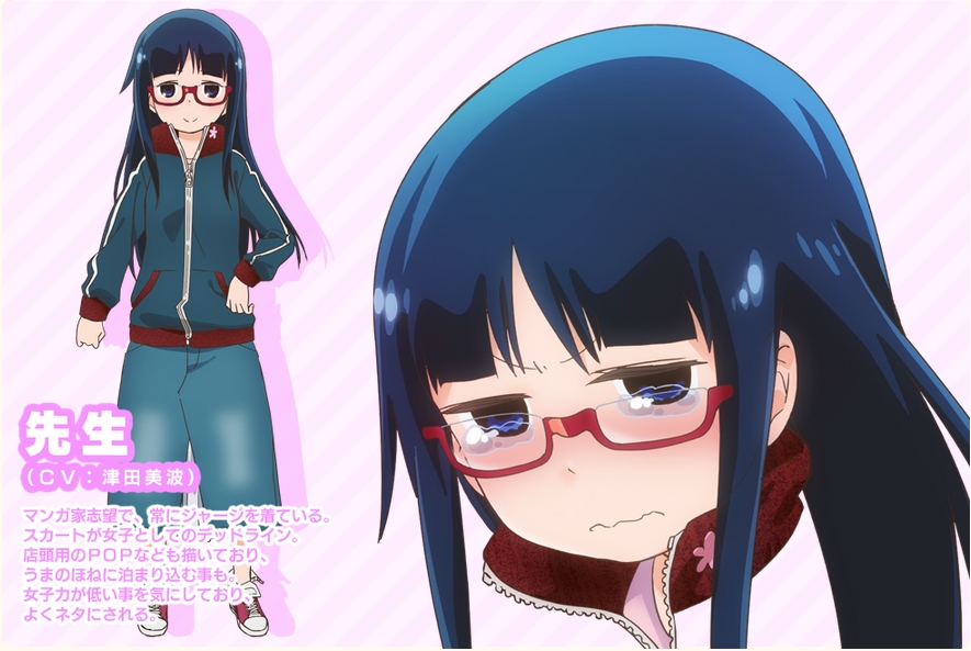 老師(CV:津田美波),立志成為職業漫畫家的同人作家。