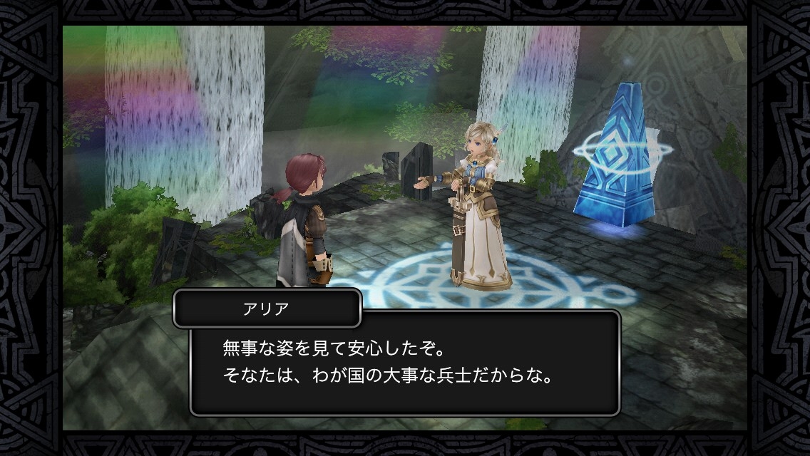 靠近 NPC 時攻擊圖示就會變成對話圖示,觸碰後即可進行對話。在遊戲教學結束後,就可以跟負責導覽玩家的公主「雅莉亞(アリア)」對話,然後開始進行「故事任務」。