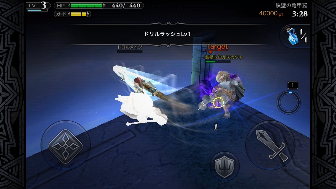 戰鬥時的動作主要是「攻擊」「防禦」,以及發動武器是所設定的特殊攻擊「技能」 3 種。這些都只要觸碰就會馬上發動。