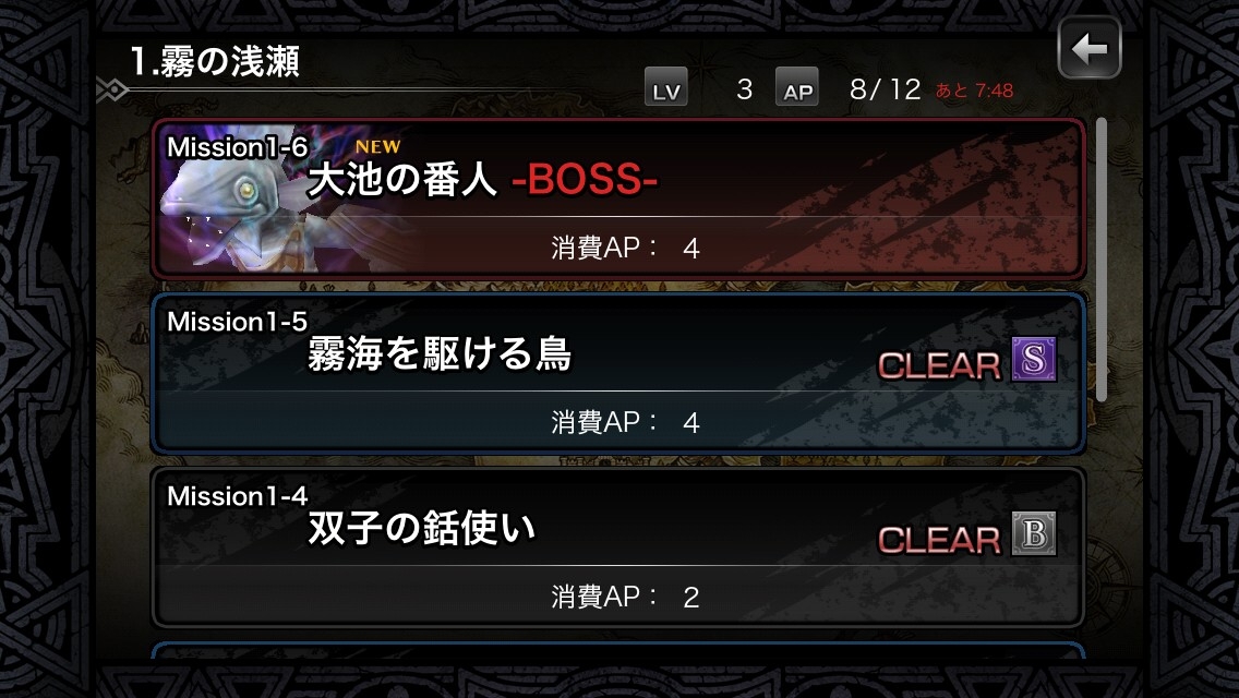 除此之外,如果想要在 AP 不足時挑戰任務的話,也可以使用付費點數「Mist(ミスト)」來恢復(選擇任務時以及黑市都可恢復)。