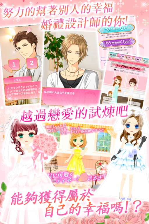故事劇情描述玩家所扮演身為婚禮顧問的女主角在因緣際會下,受到上司委託負責 3 組婚禮籌備。所擔任的對象有自我中心的富家公子、合作的禮服設計師,還有…前男友?令人心跳不已的情節正要上演!