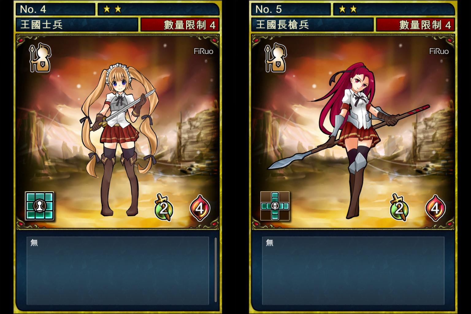 王國士兵及王國長槍兵只有攻擊範圍不一樣
