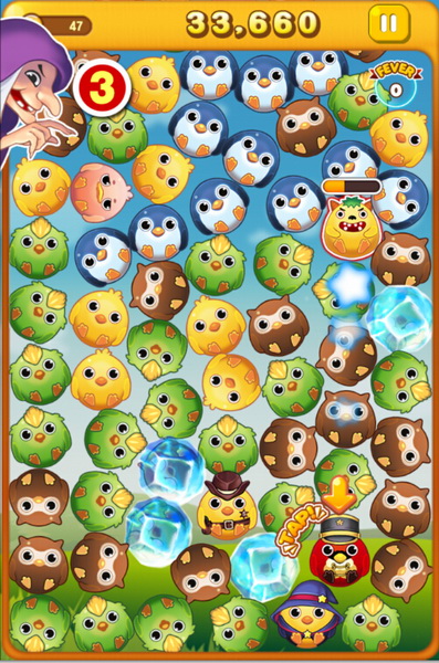 遊戲玩法非常簡單,只要滑動螢幕就可以將出現的鳥球連線三個以上即可消除,連線不同的數量還可啟動特殊魔法,善用魔法可以使你玩得更持久,分數自然就更高囉!而除了魔法以外還有FEVER模式,只要連續消除鳥球達到一定的Combo,將有數秒的時間可以滑動螢幕將鳥球一掃而光,配合魔法使用就不必擔心鳥球疊太多被邪惡女巫趕回家喔!