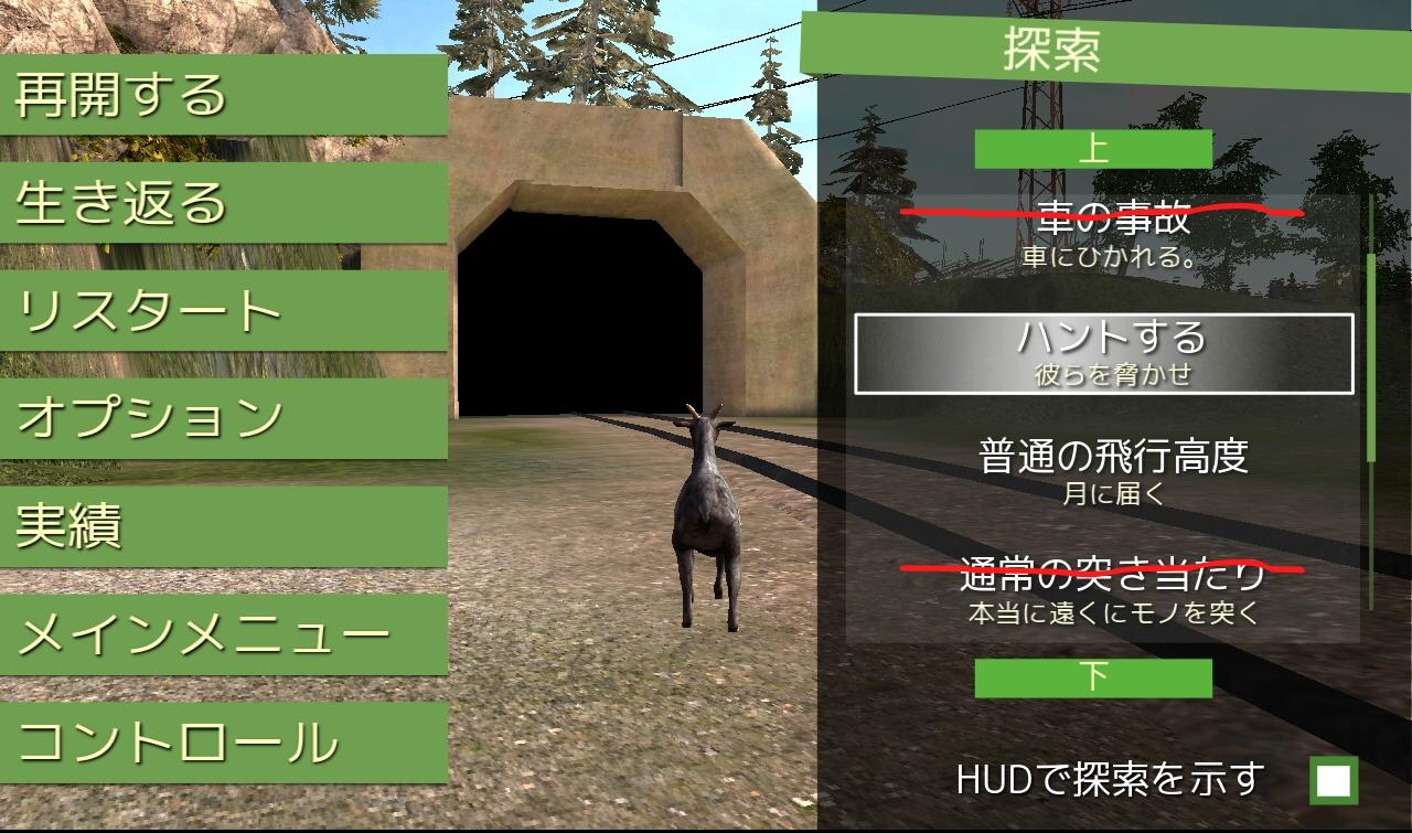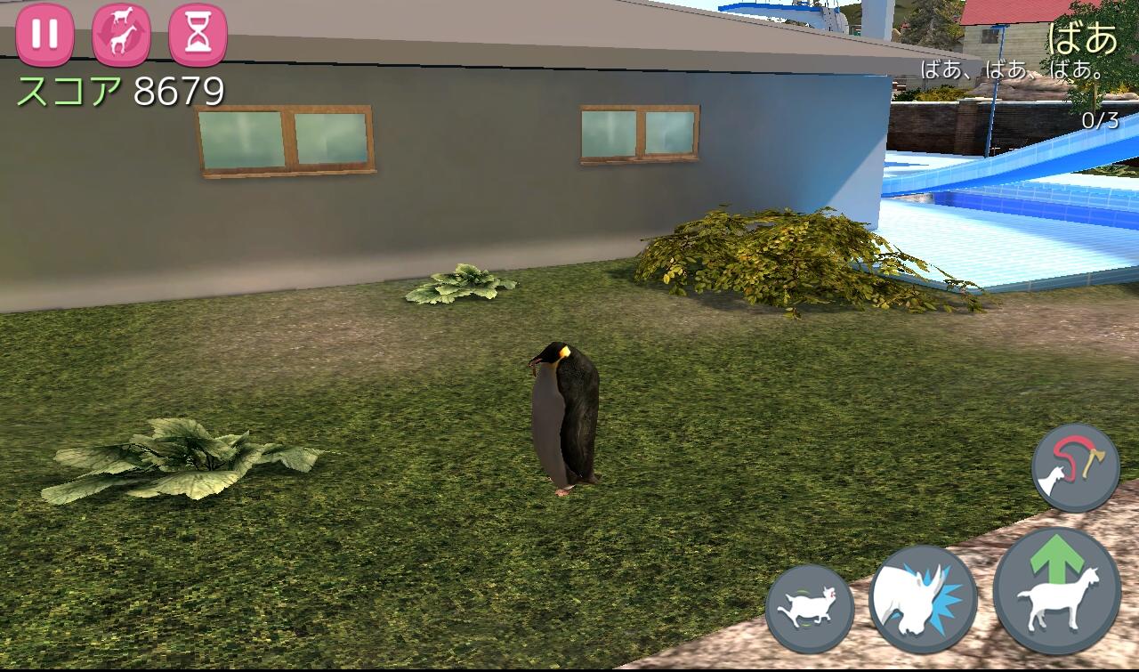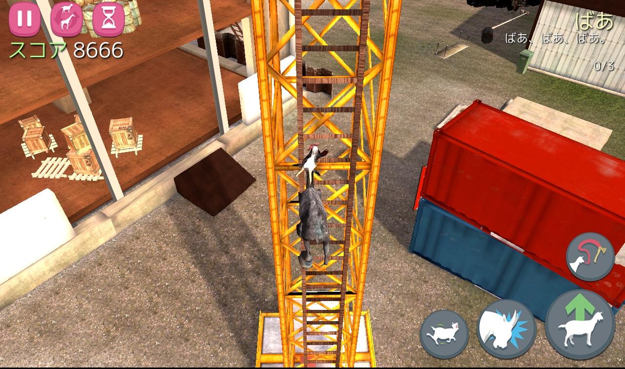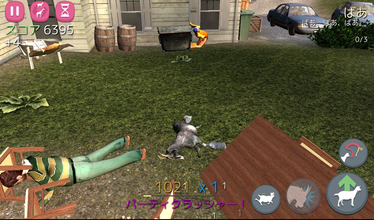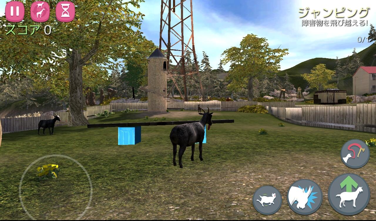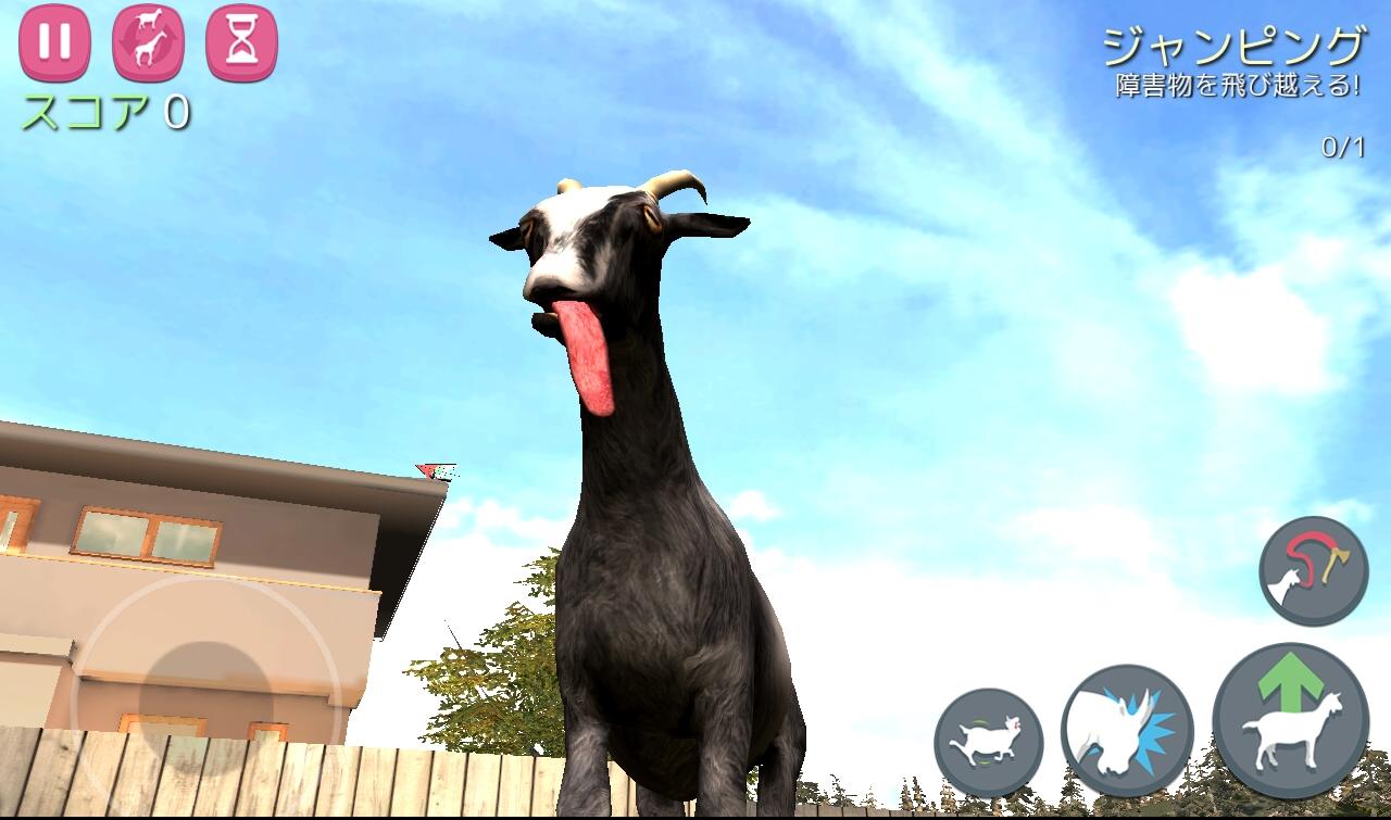 遊戲內並沒有任何說明,是從一隻羊在街上的狀態開始的。山羊的移動必須靠畫面左側的虛擬搖桿來進行,稍微傾斜的話是步行,用力推的話就會開始衝刺,玩家一開始可以先習慣一下操作的感覺。另外,只要觸碰畫面下方的按鈕即可進行跳躍,用頭撞以及伸出舌頭來抓取物件的動作。