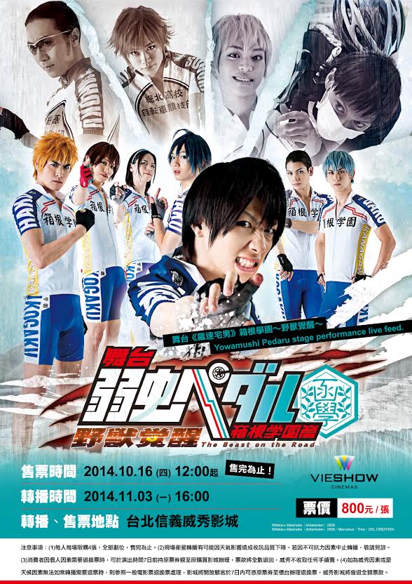 改編自動漫作品的舞台劇《飆速宅男 箱根學園篇 ~野獸覺醒~》將於 11 月 3 日在東京進行最終場公演,而台灣信義威秀影城也宣布將於當日進行同步轉播,並公開了詳細的轉播資訊。