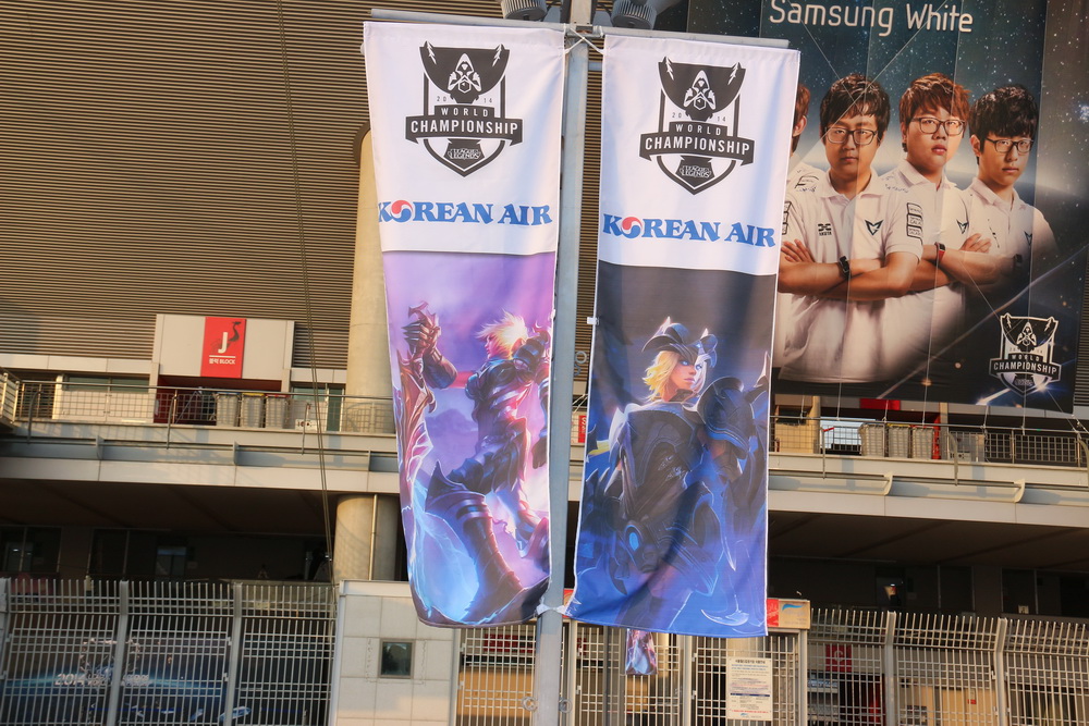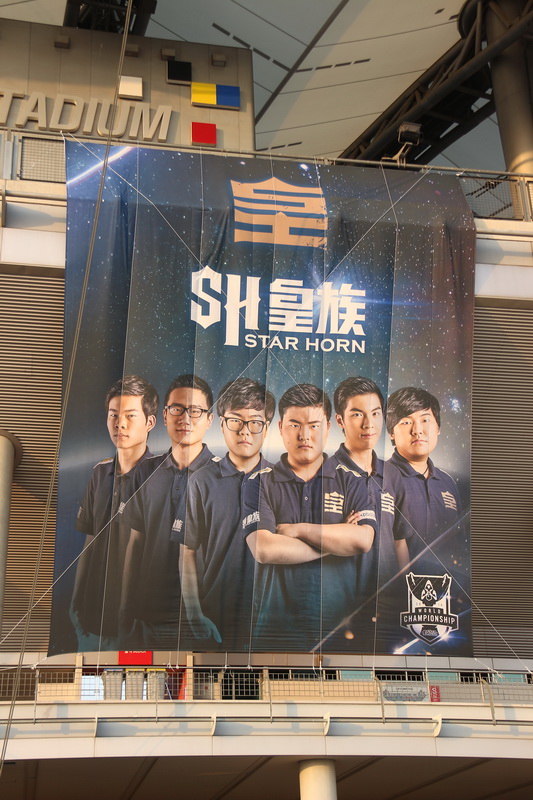 上岩體育館周圍都是英雄聯盟世界大賽的旗幟