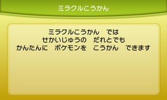 選出自己一隻神奇寶貝作為交換,馬上就會和世界的某人交換他的神奇寶貝。