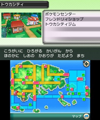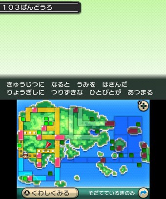 下畫面是從上往下看的豐緣地方的地圖,可以一邊飛行一邊確認自己的位置。