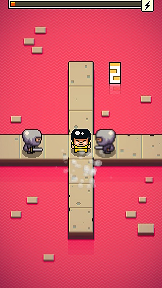 遊戲中玩家所操控的武術高手站在兩條道路的交叉點,忍者們會沿著道路的四個方向步步逼近,當忍者貼近武術高手時,往該方向滑動一下就能出招擊倒它們,遊戲目標與樂趣其實就是衝高積分與取得新角色。