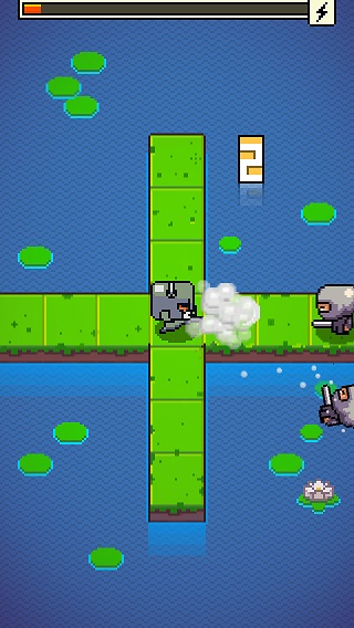 每次重啟遊戲時場景會隨機變化,遊戲的上方有一個計量表,每擊倒一名敵人計量表裡的能量就會增加,當能量集滿時會自動發出全畫面攻擊的範圍技,每個角色都有獨特的範圍技特效。