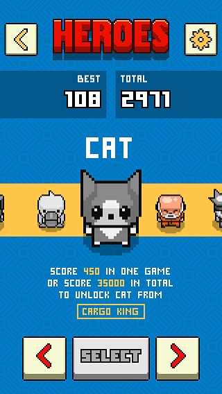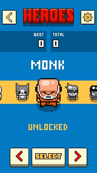 遊戲一開始只有酷似龍拳師父的戰鬥武僧可以選擇,只要單場分數或累積總分達到一定標準就能解鎖李小龍或德古拉等角色。
