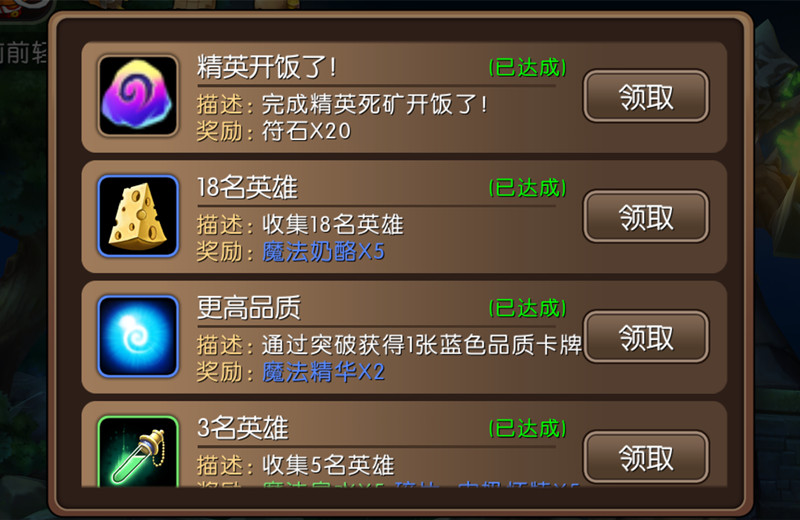英雄界面中有英雄的詳細屬性,還可以查看裝備、技能、英雄來源以及未獲得的英雄、已經獲得英雄。英雄有白,綠,藍,紫四個品質,達進階所需的等級、裝備的條件後便可突破,進階後夥伴形象會略有變化。每個英雄都有不同的技能,除了一個手動技能外還有兩個非手動技能,公測後預計開放第四個技能。透過追加技能點可以提升技能等級。