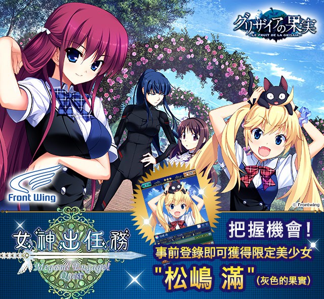 本作由日本 G-mode 開發並採全球直營,遊戲內搭載中英日三國語言版本,可依玩家喜好隨時切換。日前官方事前登錄轉蛋數甫突破 95 萬,遊戲上架前達成轉蛋 100 萬次便可順利再取得一名隊員,也將限量送出秋季動畫新番《灰色的果實》女主角「松嶋 滿」。