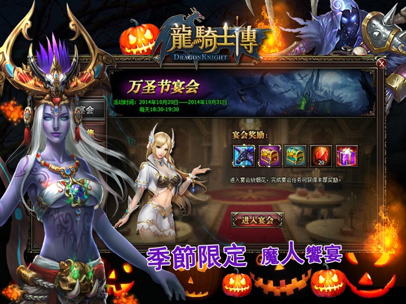 活動內容:玩家進入宴會放煙花和完成宴會任務可獲得坐騎、寶石、變身卡獎勵