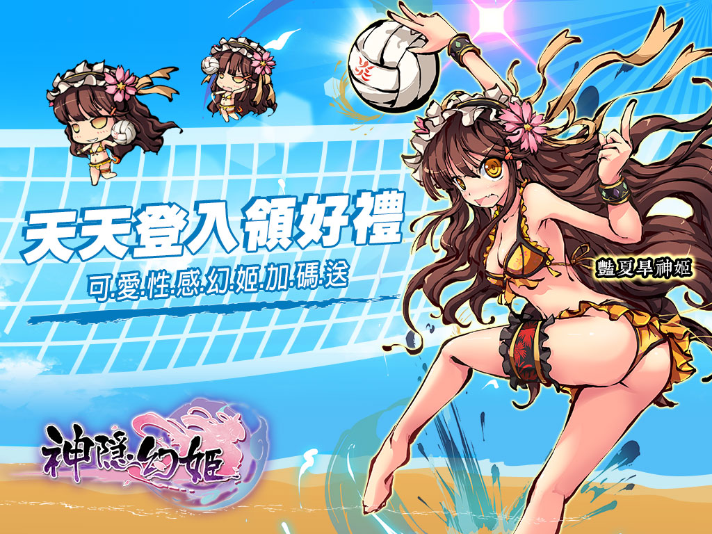 神隱幻姬》遊戲,天天都可以領到登入好禮,裡面有能讓幻姬快速升等的『祭祀陰陽學徒』、可以用在祭壇裡召喚幻姬角色的『靈玉祈願石』、『羈絆祈願石』及『判幣箱』,還有能讓幻姬升階的道具組... 等豐富獎勵,而且在 11 月底前累積滿 30 天登入,還加送限定的『豔夏旱神姬』幻姬角色,如此豐富的獎勵絕對讓玩家大呼過癮,充分享受遊戲的樂趣。