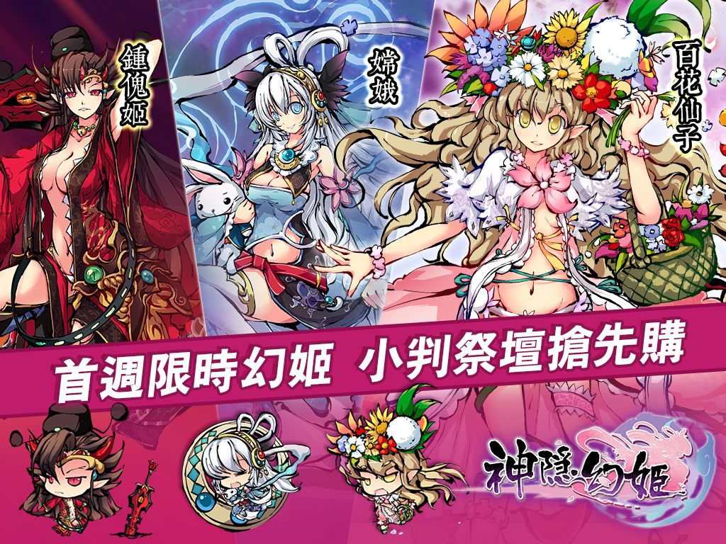 神隱幻姬》眾多幻姬們將在今日 (10/23) 正式於安卓 Google Playg 商店上架,請長期支持戰谷的玩家們,務必不要錯過這款可愛與性感幻姬兼具的日系精緻手遊大作,同時戰谷為感謝玩家支持,只要玩家首次儲值,就額外加送限時的『趙公萌幻姬』、『祈願魔黠球』內含祭祀陰陽學徒,讓幻姬能快速升等,以及『判幣祈願石』可於判幣祭壇裡召喚 1 位幻姬,另外第一週在判幣召喚祭壇中還別推出『鍾傀姬』、『百