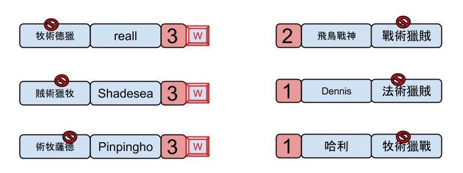 本週五(10/24)第 3 周賽事開打,出戰選手為 Shadesea、reall、羅杰三人,其中 reall 幾乎為台韓出戰固定班底,而新進選手 Shadesea 連續於對內賽中取得佳績,本週以 A 組勝部冠軍之姿取得出戰資格,至於羅杰則是擊敗上季戰神 Pinpingho 出線,三人對內、外均有不俗表現,讓人期待本屆的發揮。
