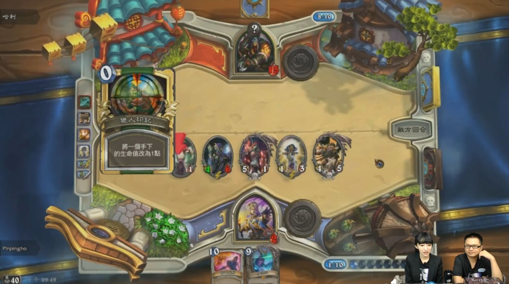 新加入華義職業戰隊的 Pinpingho 對戰哈利的首戰,雙方皆以死聲牧師做先發,Pinpingho 第三回合準時搭配出了強大的受傷大劍師、治療之環 Combo,利用滿血的受傷大劍師引導優勢直至第七回合,待哈利終於解決受傷大劍師後局面已基本穩定,Pinpingho 輕鬆拿下關鍵首勝。第二場哈利使用獵人對抗略有起色,無奈 Pinpingho 鎖血功力高深雙方拉鋸纏鬥數回後 Pinpingho 以兩血大逆轉,憑藉兩勝優勢即使哈利使用戰士拿下一局也於事無補,最終 Pinpingho 以薩滿結束比賽,個人比數 3:1,「台韓菁英賽—台灣獎品爭奪賽」台韓菁英選手以 3:0 大獲全勝。