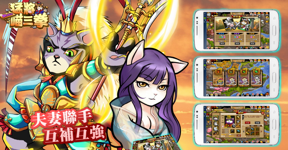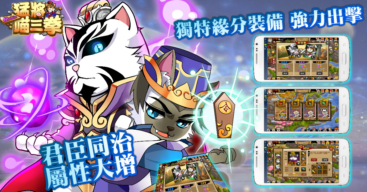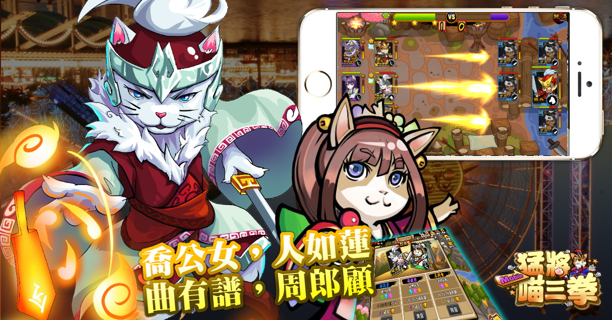 猛將喵三拳》有著數百隻的三國 Q 版可愛貓武將,主打推圖過關的玩法,玩家在擺設好武將陣型之後便可以前進關卡挑戰,
