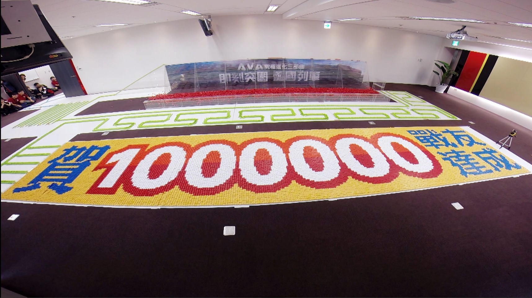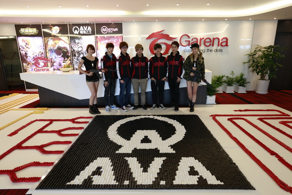 台灣骨牌創作學院」,花費一週的時間,日以繼夜以骨牌打造出《A.V.A 戰地之王》專屬圖案。活動除了邀請到 ahq e-Sports Club 外,也請到《A.V.A 戰地之王》第一百萬名會員 Momo 及其父親到場一同參與,親手打造骨牌關卡。