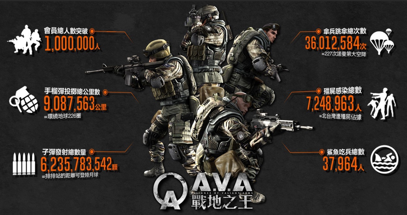 自去年 12 月上線至今已達百萬玩家數,不到一年間玩家也締造多項有趣記錄,例如超過 3,600 萬次的傘兵跳傘次數,相當於 227 次諾曼第大空降;手榴彈投擲總公里數高達 900 萬公里,可環繞地球 226 圈;殭屍感染總數達 700 萬以上,相當於北台灣幾乎都遭殭屍佔據等;而子彈射擊數量也超過 62 億發,若將全部子彈排列長度約莫是從地球到火星的距離;玩家最害怕的鯊魚一年內也成功攻擊 3.7 萬位士兵,也就是說每天超過 100 位士兵遭受巨鯊攻擊。