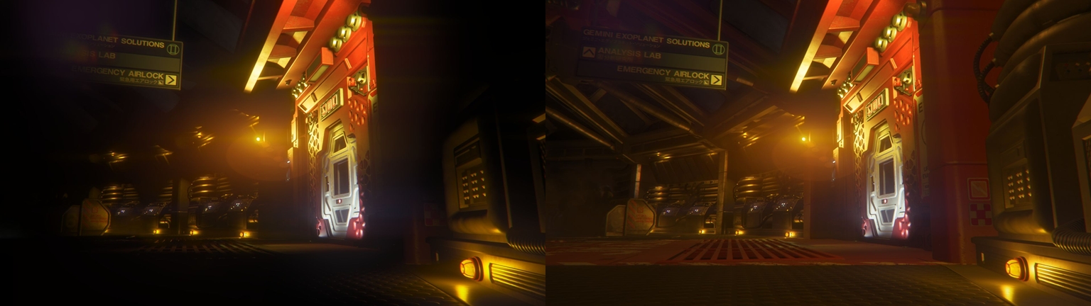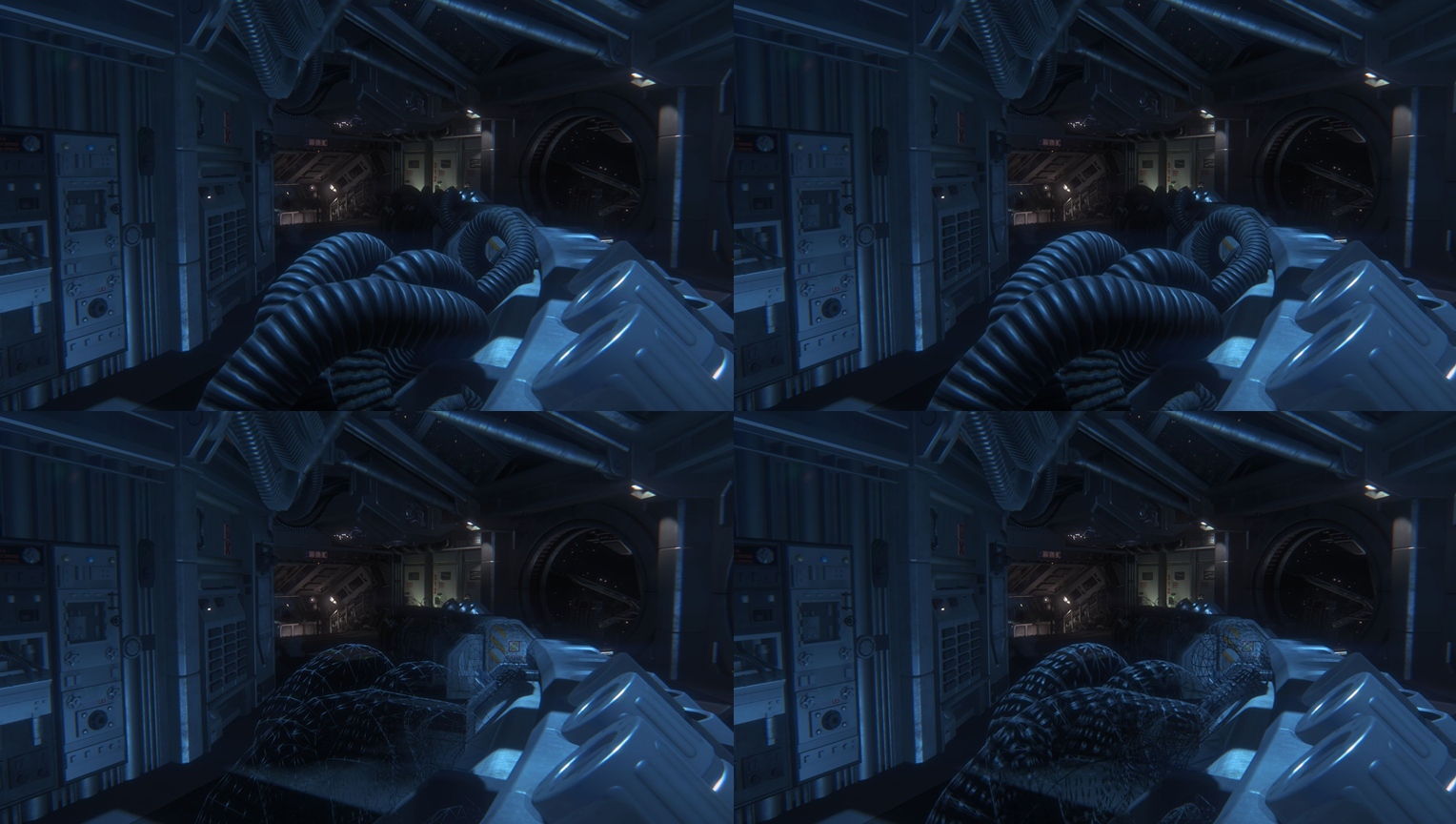 異形:孤立》的陰森氛圍而言,逼真的陰影是關鍵要素。為了要讓這些陰影盡可能逼真,Creative Assembly 的團隊採用 AMD 的「接觸硬化陰影(contact hardening shadow)」技術。這項技巧會根據陰影與光源及產生陰影的物件之間的距離,機動地硬化或柔化陰影的輪廓邊緣。