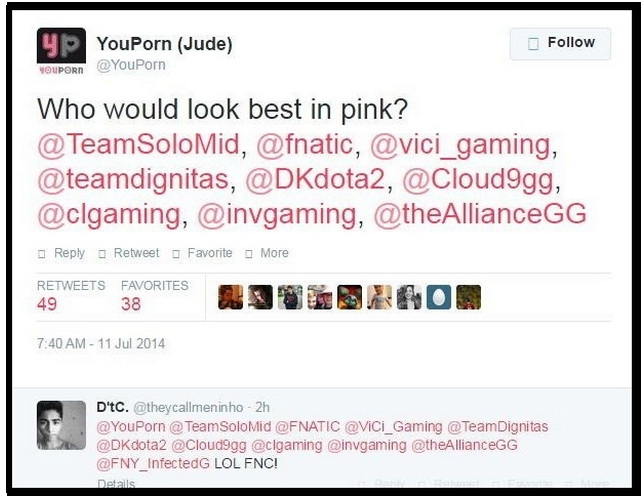 「YouPorn」於推特詢問大眾對於自己計畫贊助電競隊伍的想法