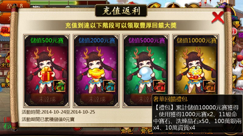 活動期間官方加碼儲值即返回高額元寶、稀有寶石及巨額銀兩,絕對不容錯過!