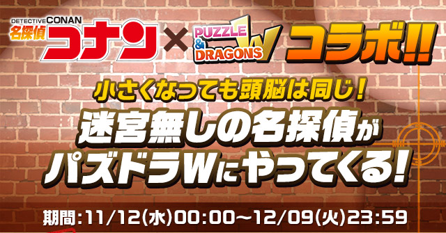 GungHo Online Entertainment 旗下《龍族拼圖(Puzzle & Dragons)》內的「蛋龍模式」《龍族拼圖 W》先前曾在官方直播節目中透露將與人氣推理漫畫《名偵探柯南》進行合作,今(29)日官方終於正式推出活動網頁,宣布合作將於日本時間 11 月 2 日至 11 月 9 日展開。
