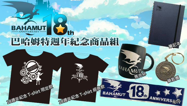 巴哈姆特 18 週年商品紀念組, 1 元巴幣起標,共有 5 組大全套,等你來得標帶回家。