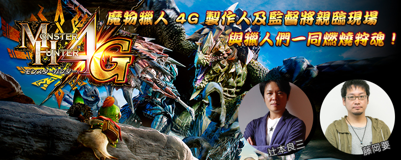 魔物獵人 4G》的製作人「辻本良三」及監督「藤岡要」,11 月 30 日下午 3 點當天將會親臨現場於比賽區域舉辦見面交流會與玩家們暢談遊戲心得;下午 4 點「魔物獵人 4G 決賽」製作人也將登台為參賽者加油打氣,現場贏得勝利的獵人可以得到《