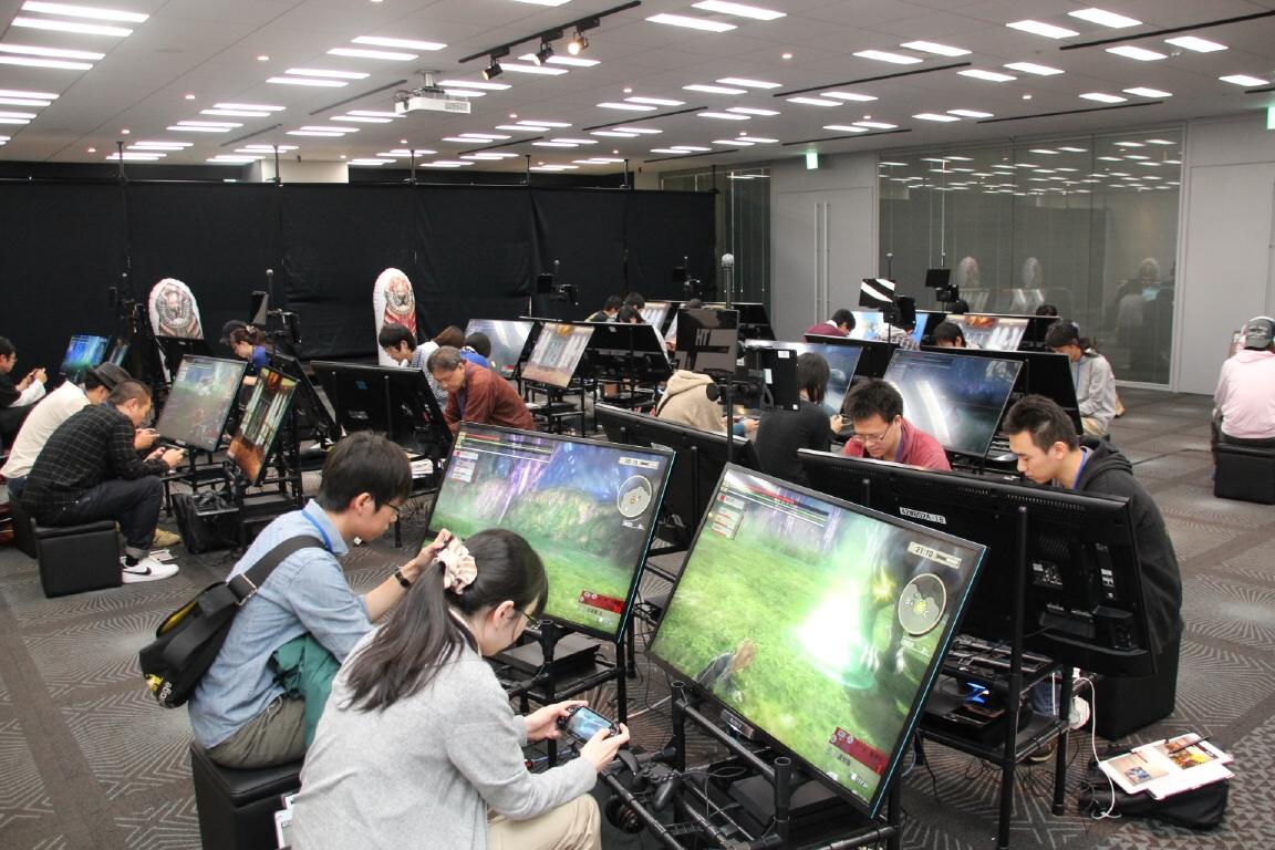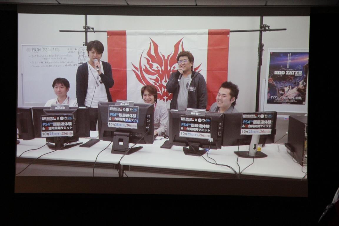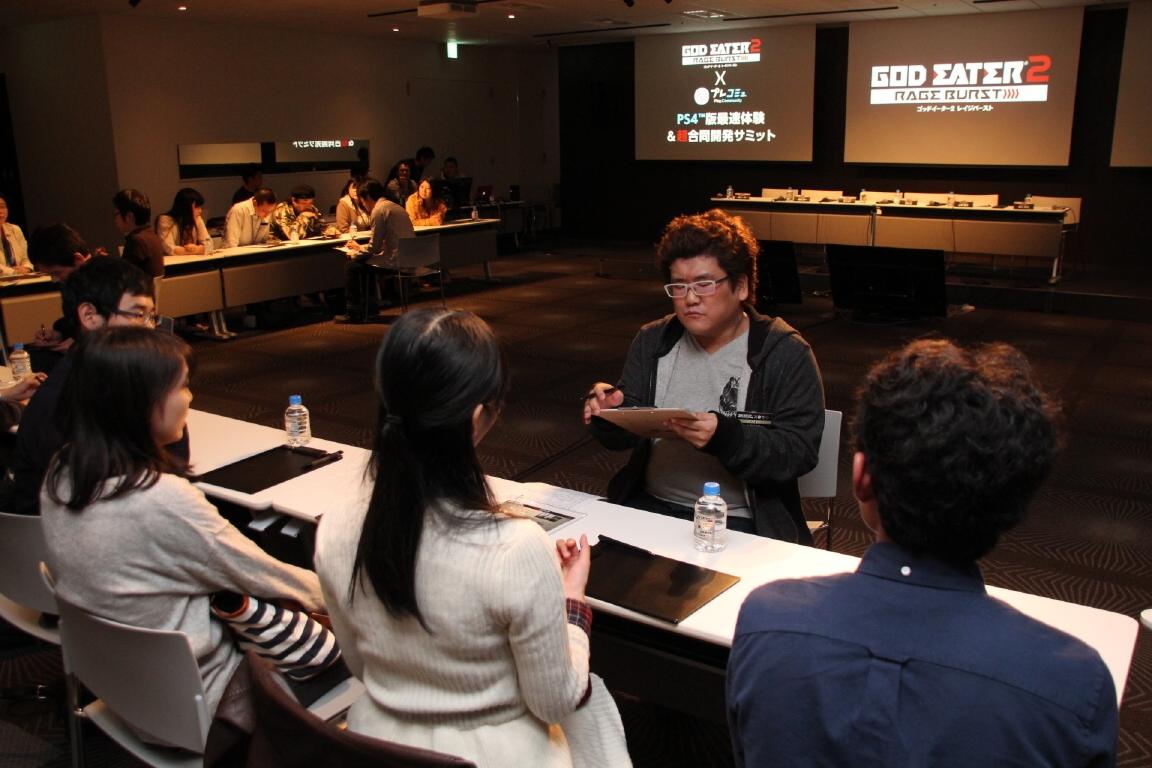 噬神者 2 狂怒解放》(PlayStation 4 / PlayStation Vita)的 PS4 體驗版本外,還舉行了由開發本遊戲的製作團隊,將來自參加者的意見及要求,當場反映於遊戲內容中的「超協同開發最高層級會議」。在此為玩家們報導於 10 月 25 日所舉行的體驗會以及最高層級會議的部分活動內容。