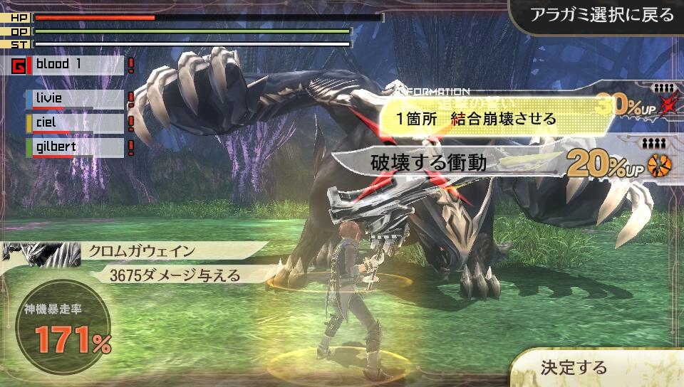 另外,在 TGS 版本裡採用了必須運用到兩手的大拇指來進行觸控,來進行鮮血狂怒之誓約的操作,但在這次的版本裡,觸控操作大多僅集中於右手,給人一種操作順暢度有所提升的印象。