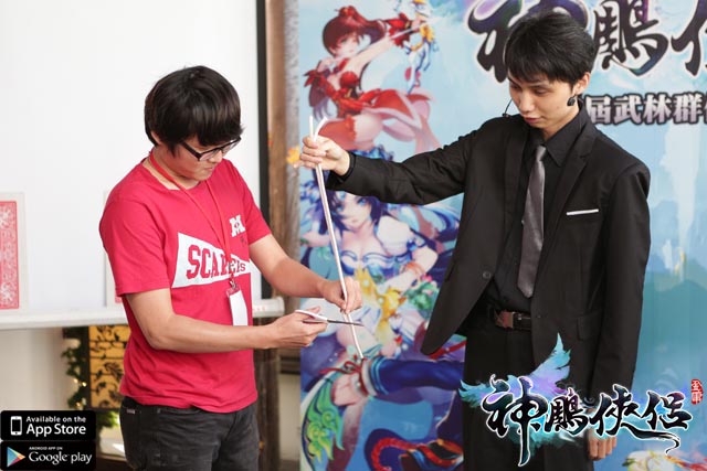 活動現場,玩家十分踴躍,不僅積極參與和魔術師進行互動,玩起「神鵰拳」來也是興致勃勃,現場笑聲不斷。