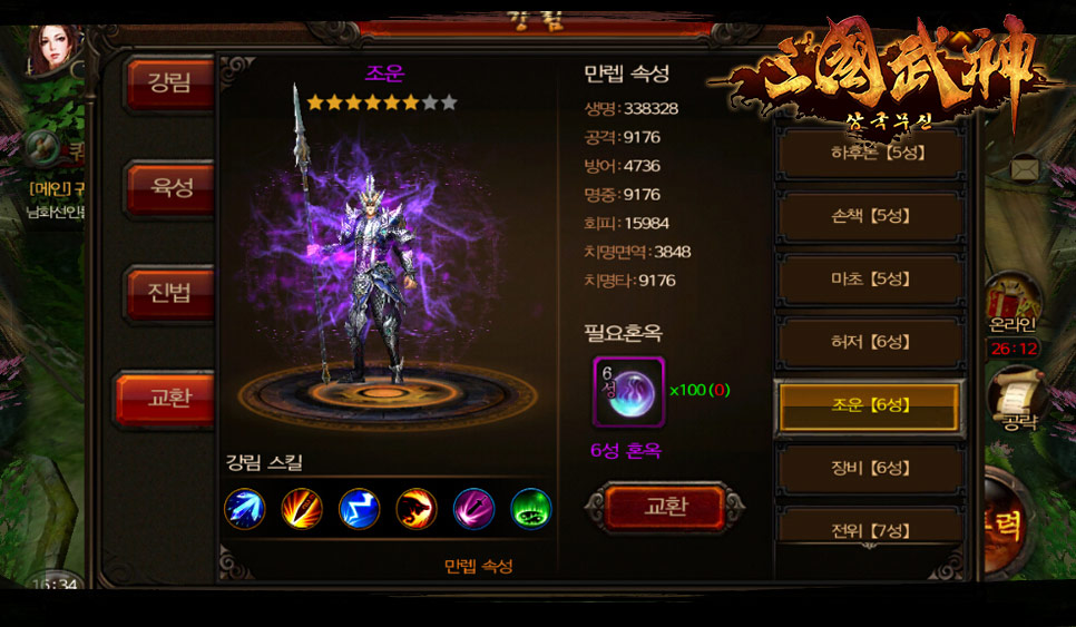 魂玉的等級劃分從一星到八星,顏色則有白、綠、藍、紫、橙五色,等級越高的魂玉越難獲得,兌換戰魂所需要的數量也越多,但能夠兌換的武將武功自然更是高強。玩家可以在戰魂系統中,看到魂玉的合成方法,例如 5 個四星魂玉就能和成 1 個五星魂玉。魂玉等級也可以拆解,讓玩家可以隨意搭配出最佳組合。戰魂武將分為爆擊型、攻擊型與閃避型三種,不同類型都各具特色。例如六星的武將趙雲,屬於紫色的近戰閃避型武將,被動技能主要以提升血量與閃避為主。