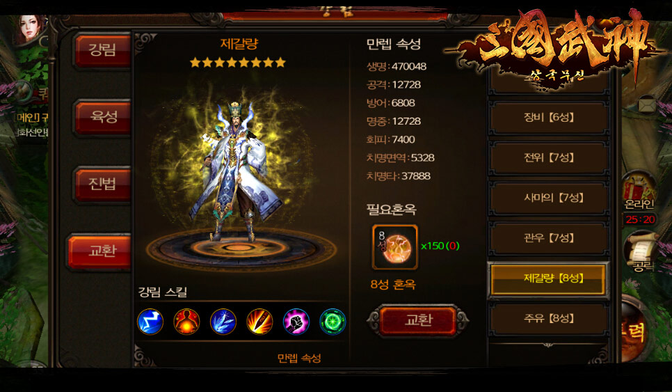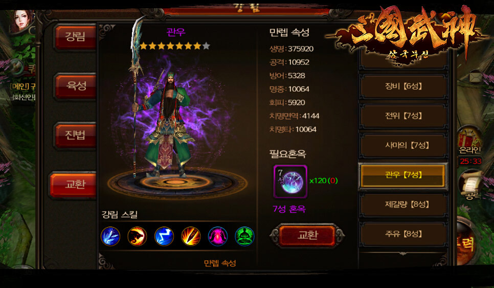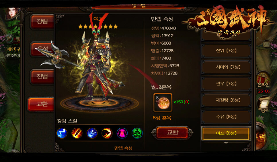 而從戰魂系統中武將的星級也能發現韓國人對於三國人物的獨特見解,玩家熟悉的關羽、張飛、趙雲不再是最強的武將,反而是富於謀略的諸葛孔明與周瑜更受到韓國玩家的重視;而對於亦正亦邪的呂布,韓國玩家也同樣視為三國最強武將,在副本關卡中遇到他,玩家可要特別小心了。