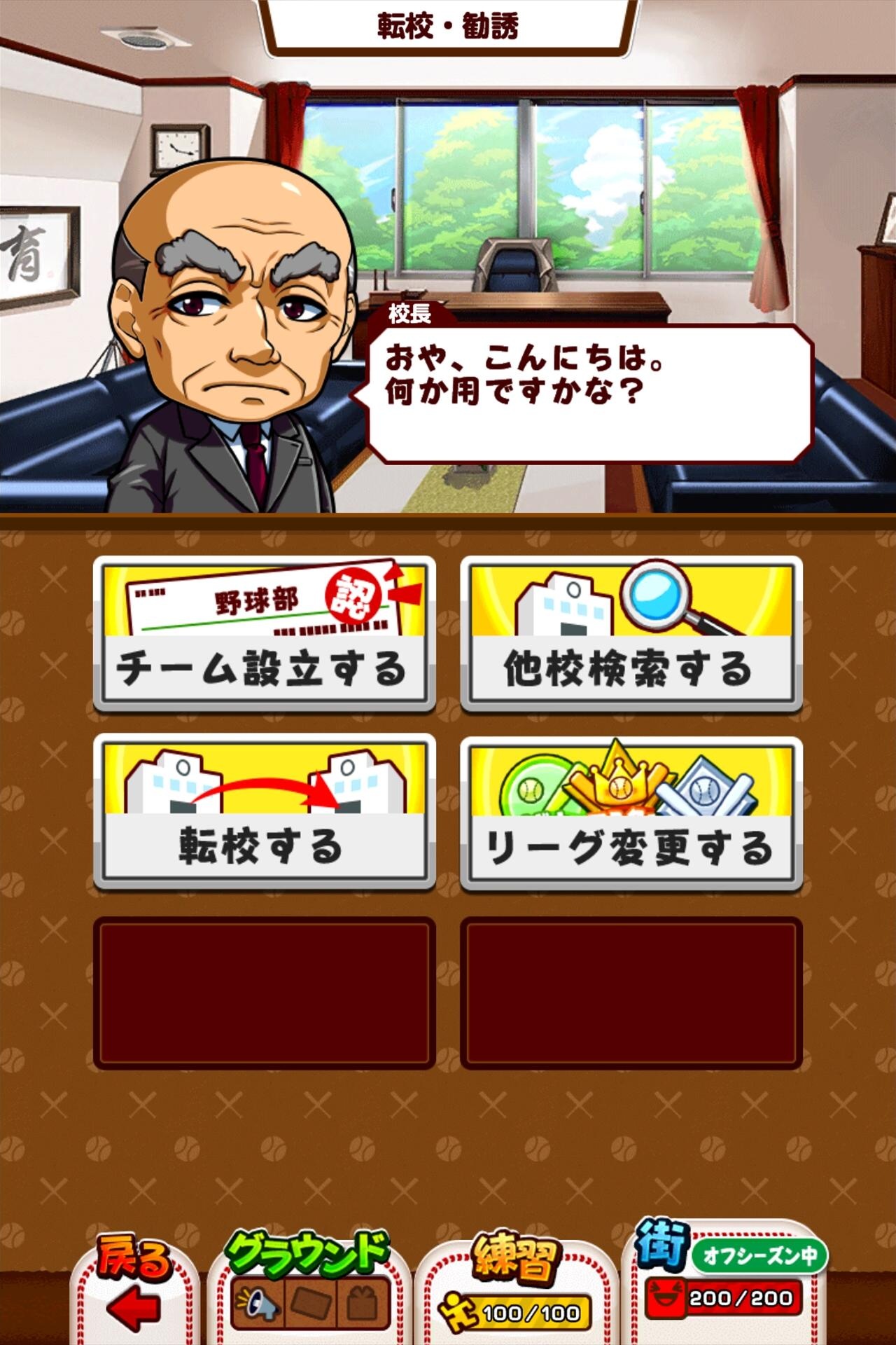 遊戲一開始要先做玩家自己的分身角色,可以選擇像高中球兒的平頭,或者飛機頭的不良少年,以及冷酷美麗的女生等五種角色,接著要選擇想要扮演投手或是野手,然後選擇想要讀的學校(球隊)。進入 CPU 推薦的學校也可以,要從檢索欄位選擇有缺人的學校也可以。