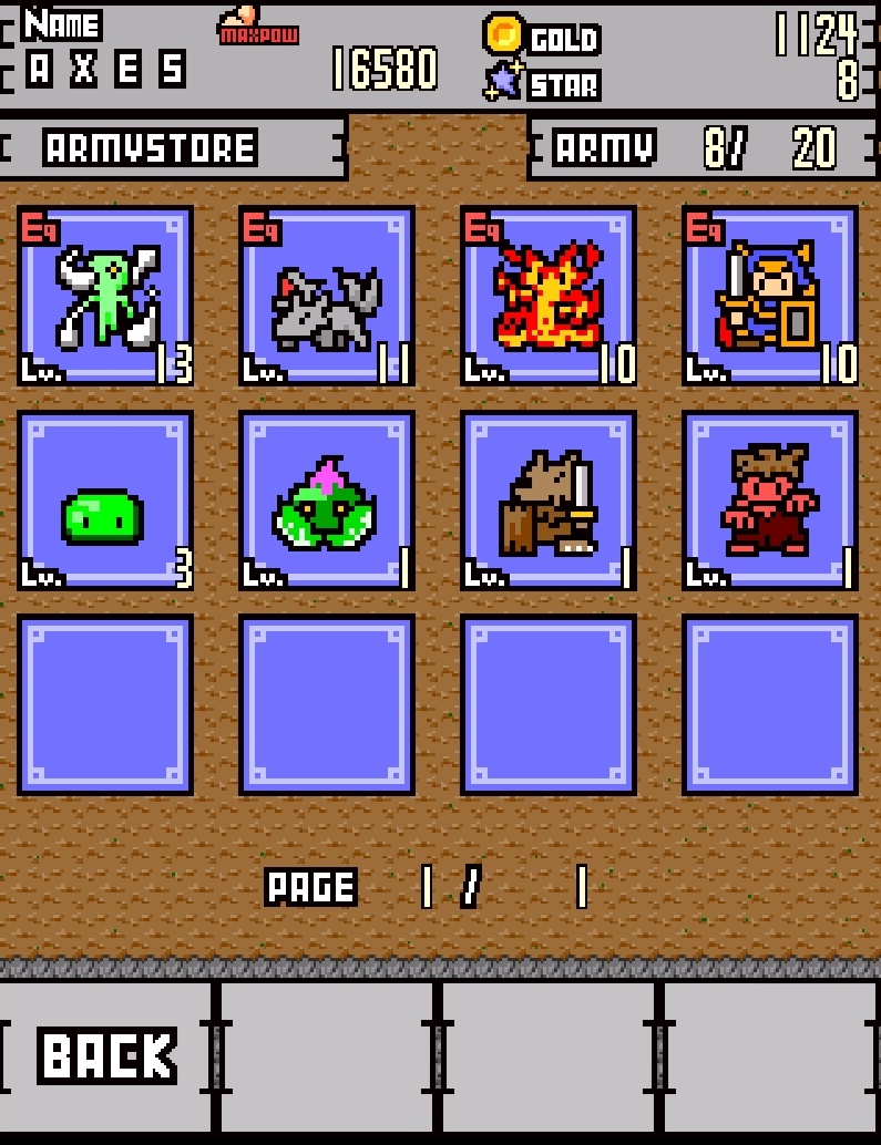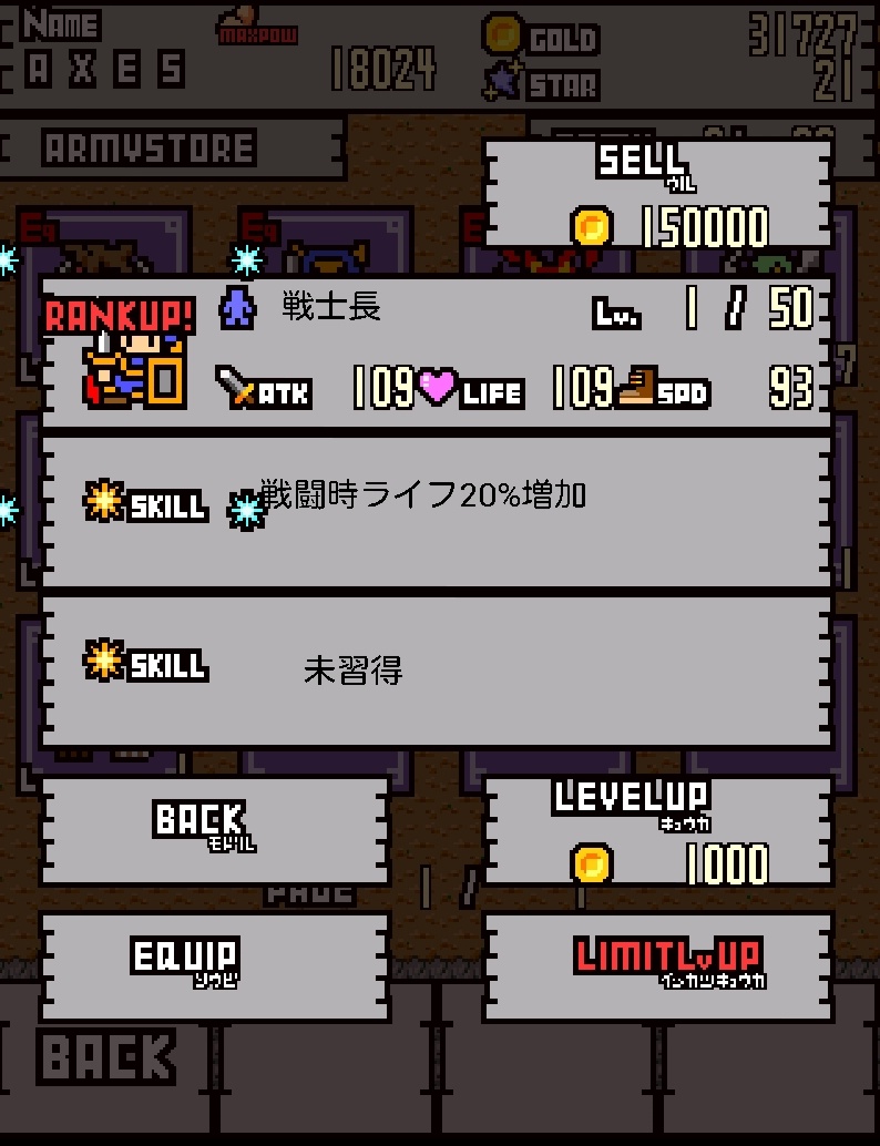 各角色的基本能力除了可用遊戲中的貨幣來強化之外,也可以透過打倒敵人時所獲得的「星星」來進化。值得注意的是,每次進化都有機會學到有用的技能,而且也能將技能繼承到其他角色身上。