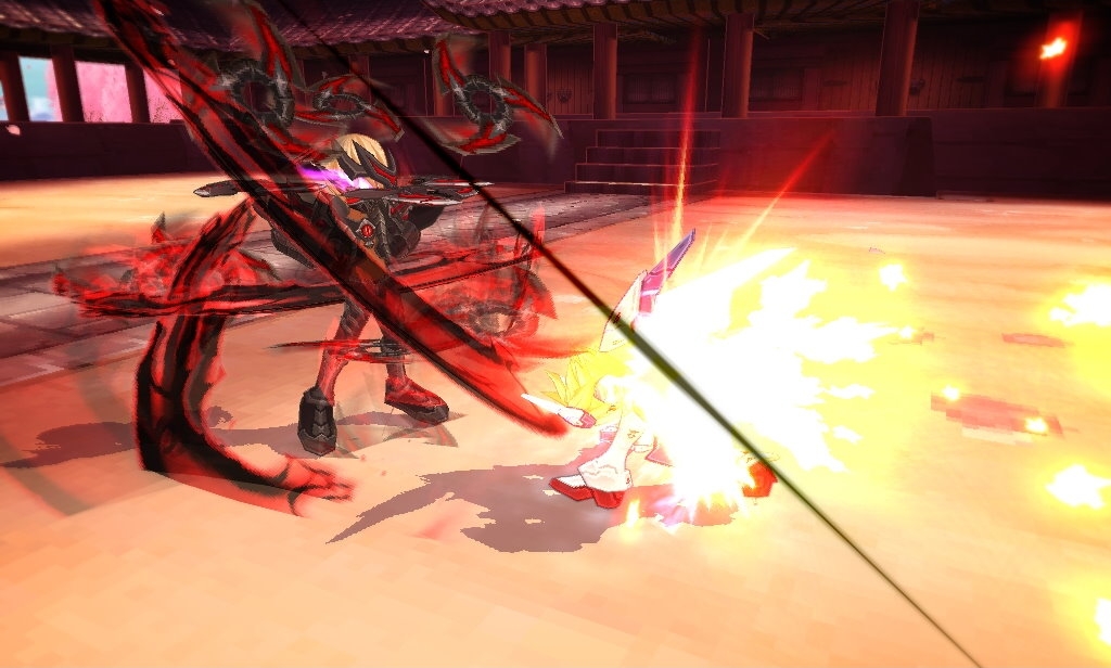 吸收周邊的敵人後,進行攻擊的巨大旋轉血刃(D鍵)。